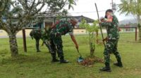 Anggota Koramil Puring Kencana Kapuas Hulu, Saling Bahu-Membahu Laksanakan Giat Pembersihan Makoramil
