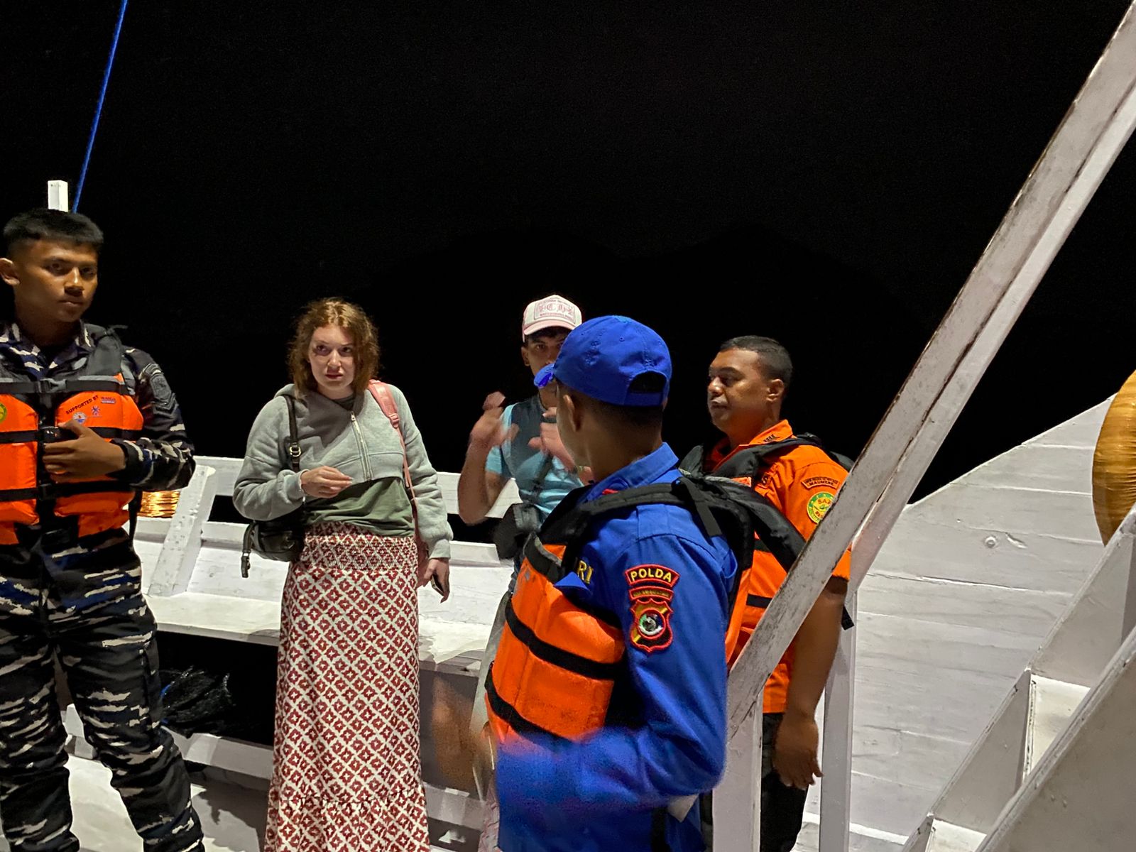 Pukul 21.10 Wita Tim SAR Gabungan tiba di Kapal Jaya 02 dan langsung mengevakuasi 2 Orang WNA menuju Labuan Bajo.