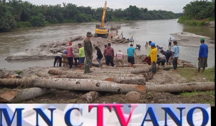 Menghadapi Pola Musim Tanam tahap II, mulai kemarin, kami melakukan gotong royong melanjutkan pemasangan cerocok baik bambu maupun batang kelapa lagi. Mudah-mudahan dengan lebih panjang cerocok yang kami pasang dan tanamkan di Sungai bahbolon akan lebih luas panjang dapat menahan air lebih deras, dan air menekan membelok ke bendungan berharap air deras mengalir dan petani dapat bercocok tanam, jelas Rusman.