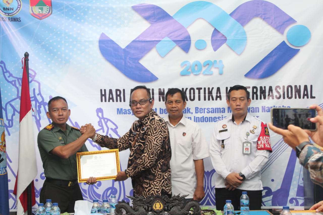 Sebelum mengikuti acara, kepala BNN Musi Rawas AKBP Abdul Rahman memberikan piagam penghargaan kepada masing-masing perwakilan dari Kepolisian, Kodim 0406 Lubuk Linggau dan Lapas Narkoba Muara Beliti.