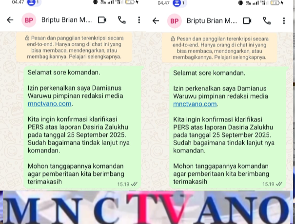 Ironisnya Briptu Brian M.U Halawa di duga tidak kooperatif. Saat awak media konfirmasi klarifikasi PERS melalui WhatsApp pribadi nya dengan nomor : 08239652**82 demi perimbangan pemberitaan. Namun sangat di sayangkan tidak memberi tanggapan sama sekali. Hingga berita ini di terbitkan
