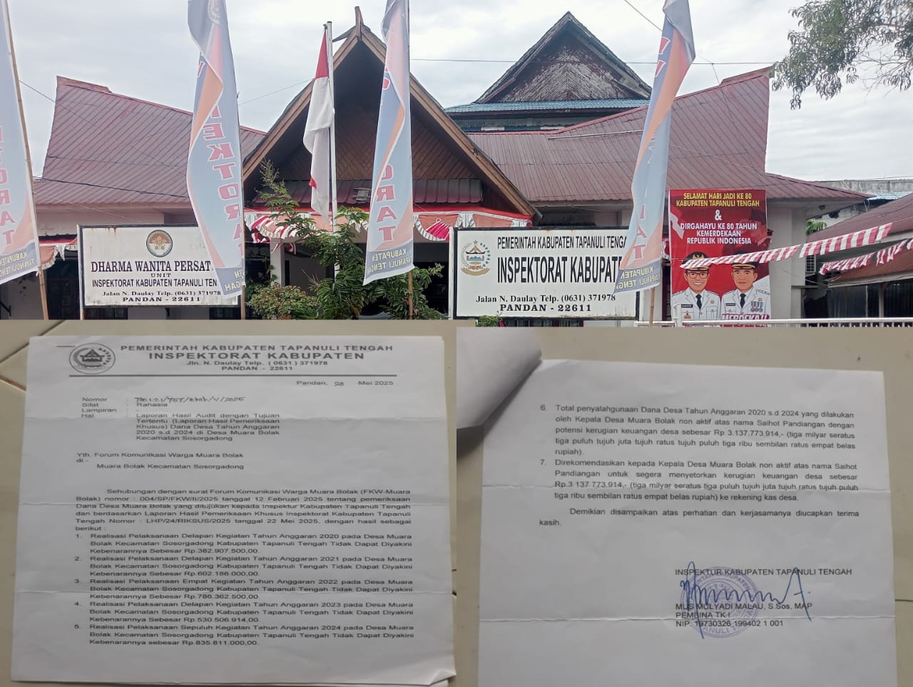 Inspektorat Kabupaten Tapanuli Tengah kemudian melakukan pemeriksaan khusus dan menemukan adanya penyalahgunaan dana desa yang signifikan.