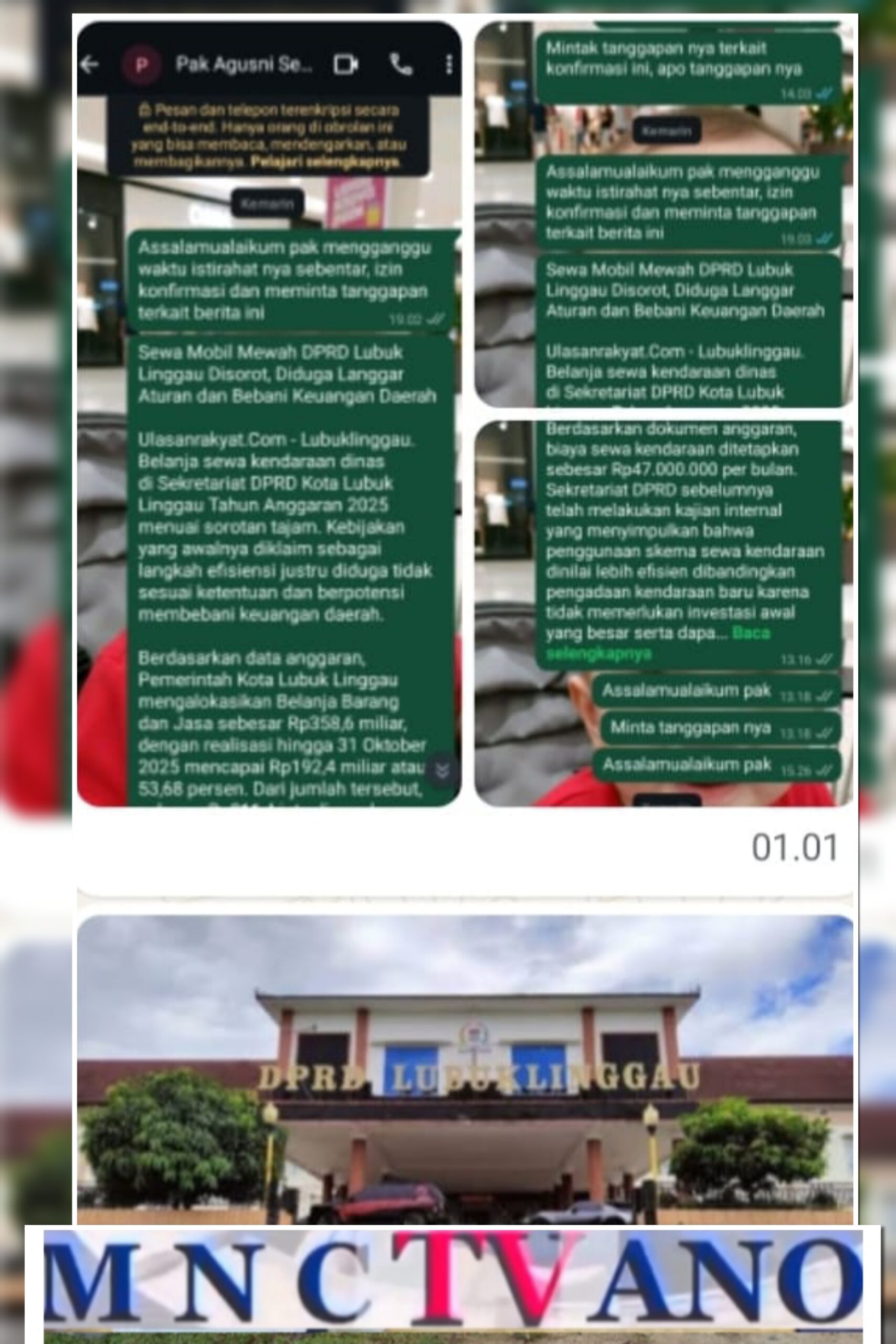Hingga berita ini diterbitkan, pihak Sekretariat DPRD Kota Lubuk Linggau belum memberikan tanggapan resmi meskipun telah beberapa kali dikonfirmasi oleh awak media terkait polemik anggaran sewa kendaraan dinas mewah tahun 2025 tersebut.