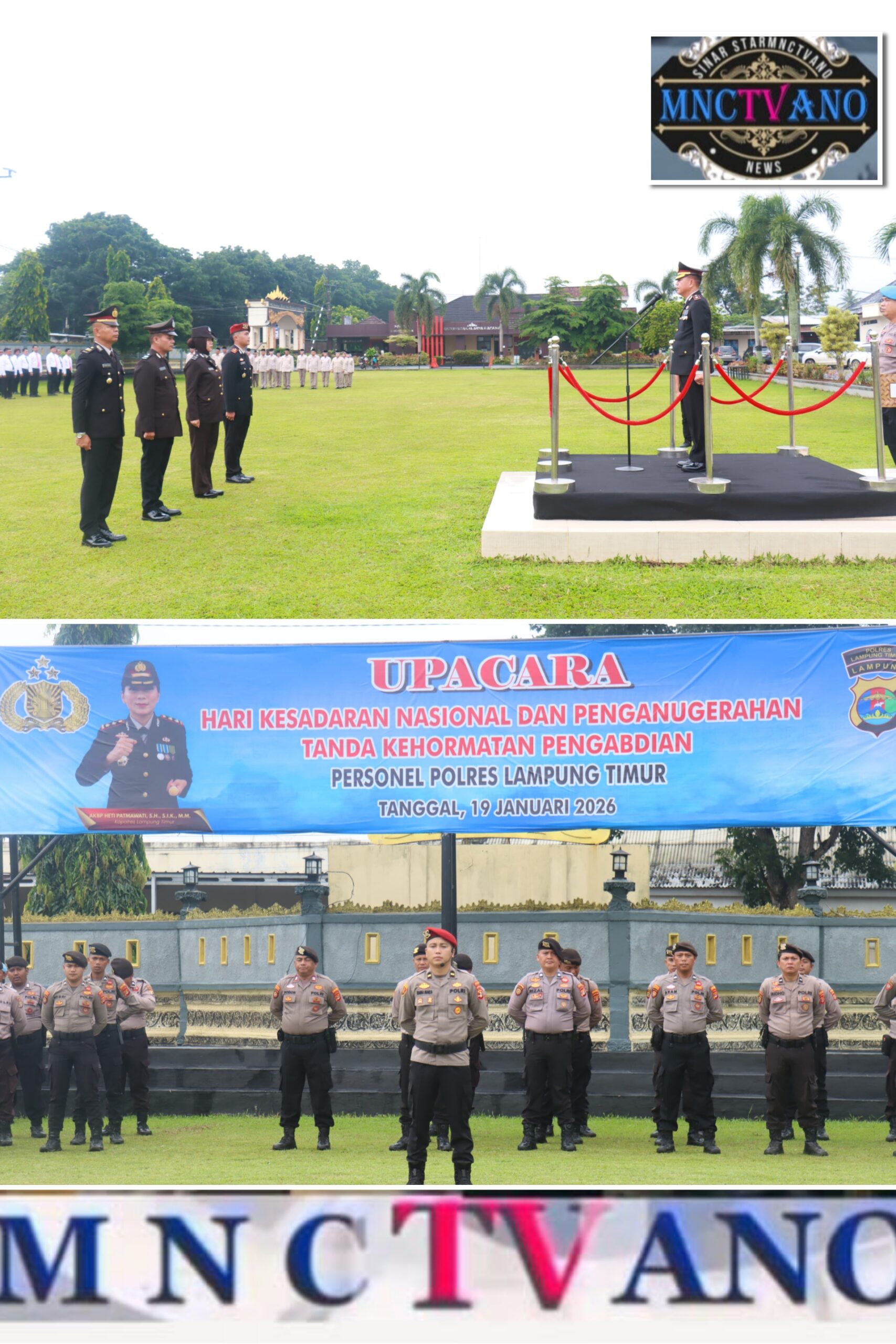 Lampung Timur, Lampung, mnctvano.com – Polres Lampung Timur melaksanakan Upacara Hari Kesadaran Nasional yang dirangkaikan dengan Penganugerahan Tanda Kehormatan Pengabdian kepada personel Polri, bertempat di Lapangan Satya Haprabu Polres Lampung Timur, pada Senin pagi (19/1/26).