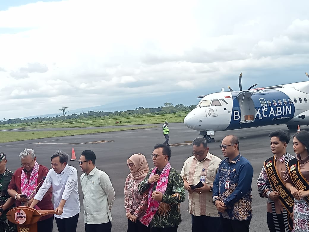 Bupati Jember Muhammad Fawait, S.E., M.Sc., bersama Anggota DPR RI Rivqy Abdul Halim hadir dan bersama-sama melakukan Launching Penerbangan Perdana rute Jember-Bali, Bali-Jember. Tepatnya pada Jumat (5/12/2025) di Bandara Notohadinegoro Kabupaten Jember.