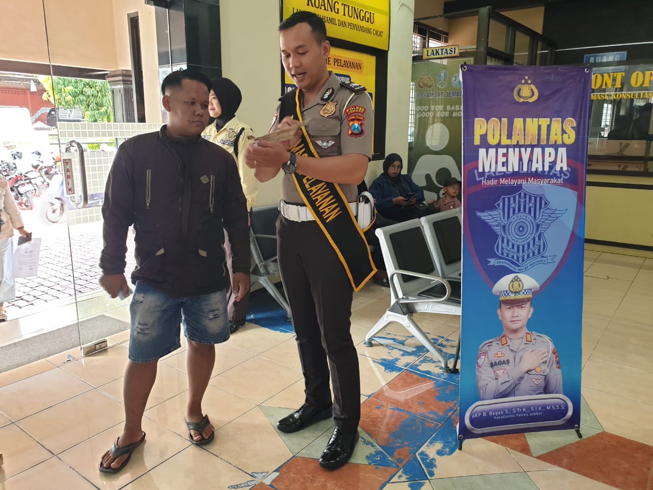 Kepala Satuan Lalu Lintas (Kasat Lantas) Polres Jember, AKP Bernadus Bagas Simarmata menegaskan bahwa Polantas Menyapa merupakan bentuk nyata reformasi pelayanan publik di tubuh Polri.