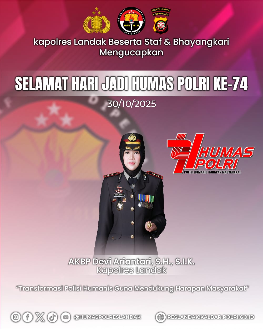 Kapolres Landak Beserta Staf & Bhayangkara Musa mnctvano.com30 Oktober 202517 Dilihat Mengucapkan SELAMAT HARI JADI HUMAS POLRI KE – 74 30/10/25 AKBP Devi Ariantari, S.H,.S.I.K. Kapolres Landak Post Views: 17 Pos terkaitBupati Jember, Gus Fawait Menyapa Kader posyandu Di Desa Mojogemi Kecamatan Sukowono.Pertumbuhan Ekonomi Maluku Menguat pada Triwulan III 2025Mahmud Efendi Lubis Wakil Bupati Tapanuli Tengah Hadiri Penutupan TMMD Ke-126Dinas Kominfo Dengan RSUD Pandan Menggelar Sosialisasi Sertifikat Elektronik Kabupaten Tapanuli TengahMasinton Pasaribu : Bupati Resmikan Operasional SPPG Yayasan Generasi Bangsa Tapanuli Tengah Di Kelurahan TukkaMahmud Efendi Lubis Dukung Pengajian Akbar Forum Komunikasi OKP Islam Tapanuli Tengah