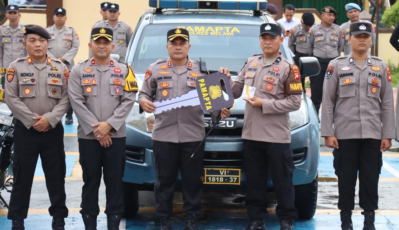 “Sebagai bentuk memperkuat dan memperluas pelayanan Polri Polres Melawi, di saksikan Waka Polres Melawi Kompol Aang Permana, S.I.P., S.H., M.A.P dan Pejabat Utama kami menyerahkan 1 (satu) unit kendaraan operasional pamapta beserta buku sakunya,” terang Kapolres Melawi.