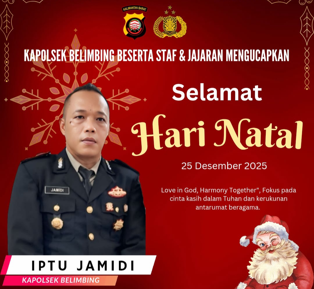 KAPOLSEK BELIMBING BESERTA STAF & JAJARAN MENGUCAPKAN Musa mnctvano.com20 Desember 202551 Dilihat Oplus_131072 Selamat HARI NATAL 25 DESEMBER 2025 IPTU JAMIDI KAPOLSEK BELIMBING Post Views: 51 Pos terkaitDandim 1206/Putussibau Pimpin Acara Tradisi Pelepasan PNS Purna Tugas : Terima Kasih Atas Dedikasi dan PengabdiannyaDandim 1206/Putussibau Pimpin Upacara Bulanan Dan Beri Jam KomandanPelaksana Proyek Kecam Provokasi Oknum LPK, Siapkan Langkah Pidana Berdasarkan KUHP BaruKrisantus Kurniawan, Terpilih Secara Aklamasi Sebagai Ketua Umum Perbakin Kalbar 2026–2030Kunjungan Kodim 0824 Jember Ke Polres JemberIbadah Perayaan Natal Mahasiswa BILD IKN Yayasan Dayak Kalimantan Kelas Kabupaten Melawi , Ir. Edwin Kristovianus, ST.MT Ketua Panitia : Ucapkan Terima Kasih, Terlaksananya Natal Perdana!!