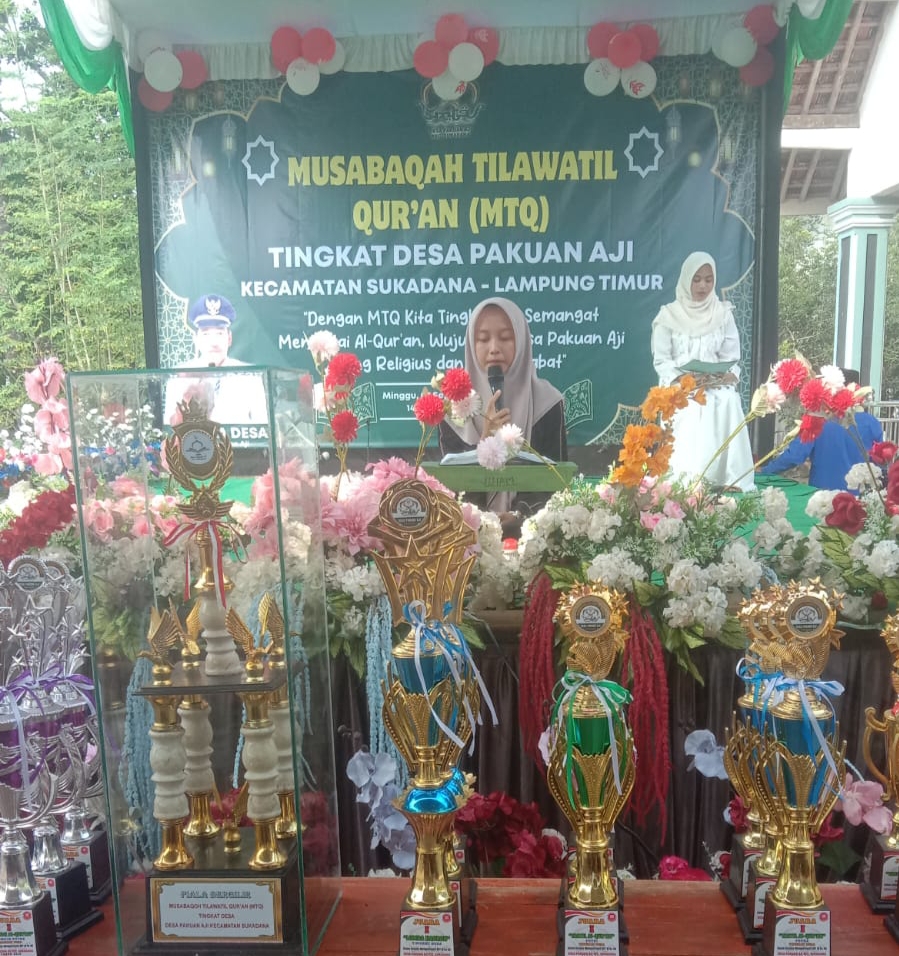 Pakuan aji,Sukadana,Lampung Timur mnctvano.com – Pemerintah Desa Pakuan Aji Kecamatan Sukadana Kabupaten Lampung Timur Menyelenggarakan kegiatan Musabaqah Tilawatil Qur’an (MTQ) Tingkat Desa Pakuan Aji dengan tema “Dengan MTQ kita tingkatkan semangat Mencintai Al-Qur’an,Wujudkan Desa Pakuan Aji yang Religius dan Bermartabat”. Acara Kegiatan tersebut di selenggarakan di halaman Masjid Nurul Hidayah Dusun 4 Desa Pakuan aji,Minggu (7/9/2025).