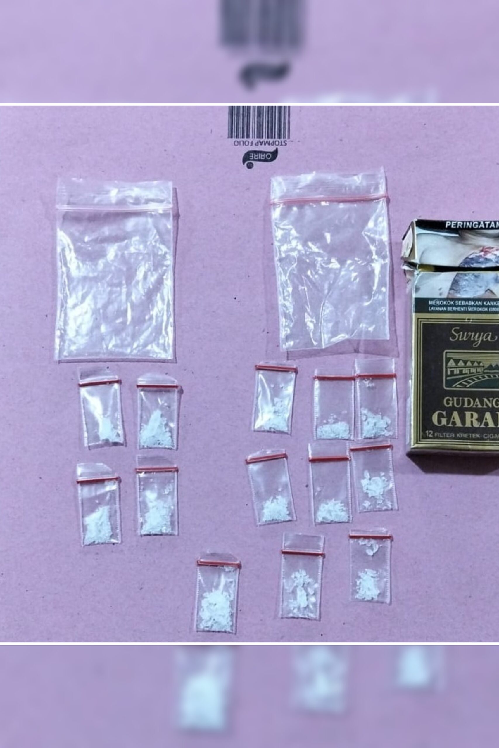 Namun, berkat kesigapan petugas di lapangan, pelaku berhasil diamankan beserta barang bukti berupa 1 bungkus rokok Surya 12 yang di dalamnya berisi 13 plastik klip bening berisi diduga narkotika jenis sabu, yang disimpan di saku celana depan sebelah kiri pelaku.