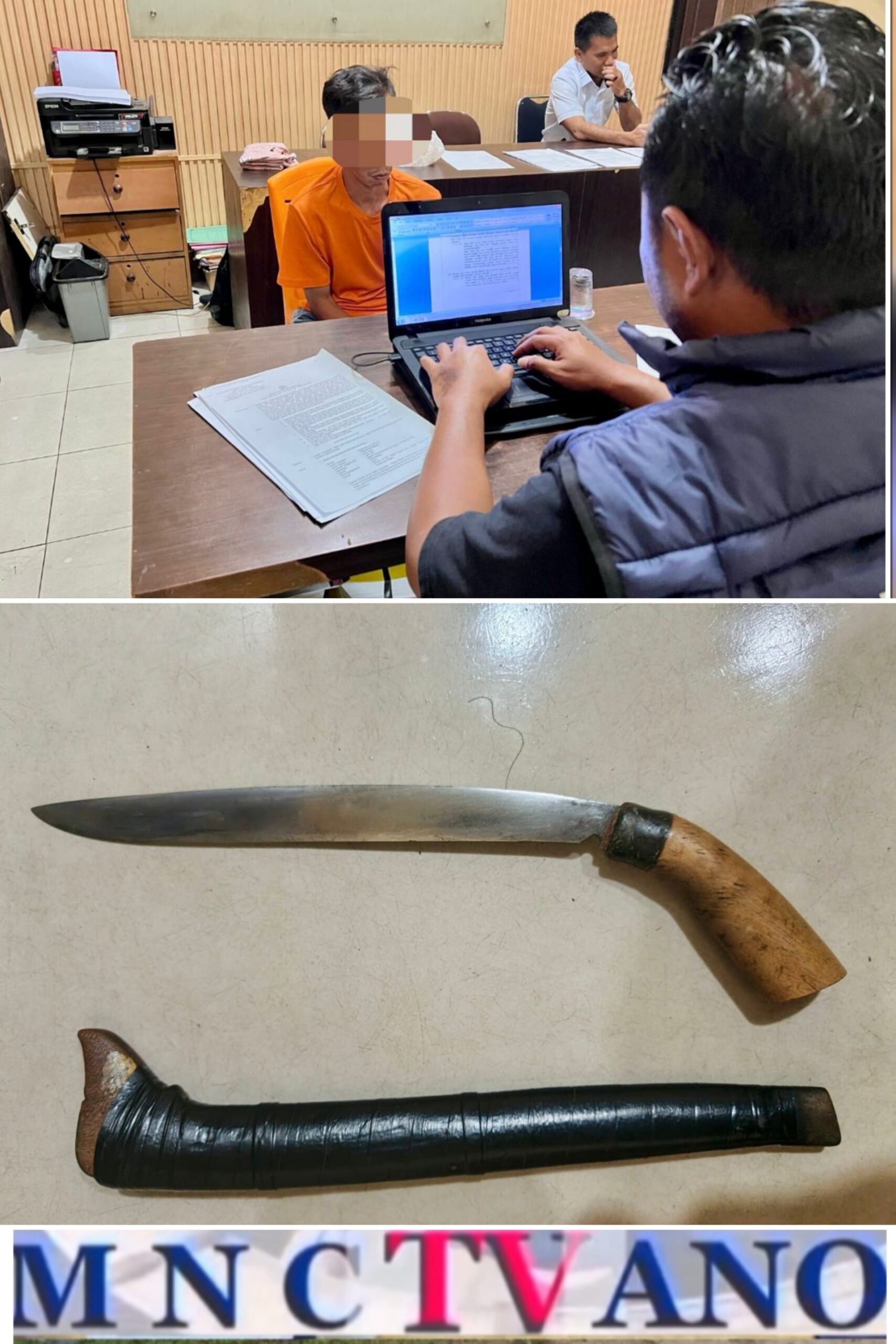 Petugas kemudian mengamankan pelaku beserta barang bukti berupa senjata tajam jenis laduk dan pakaian yang digunakan saat kejadian.