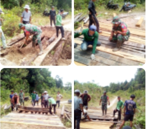 Batang Lupar, KH Kalbar – Dalam upaya meningkatkan aksesibilitas dan memperlancar mobilitas masyarakat, Babinsa Koramil 1206-03/Batang Lupar bersama warga Desa Sungai Abau melaksanakan kegiatan gotong royong memperbaiki jembatan penghubung utama antar dusun,