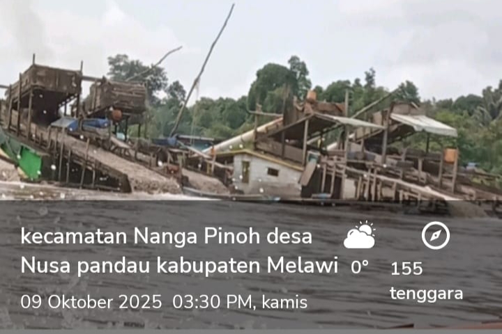 Pantauan lansung beberapa tim Awak Media keberadaan aktivitas Penambangan Emas Tanpa Izin (PETI) masih semakin masif Daerah Aliran Sungai (DAS) Melawi, tepatnya berlokasi di, Nusa Pandau Kecamatan Nanga pinoh , dan kecamatan Ella hilir,