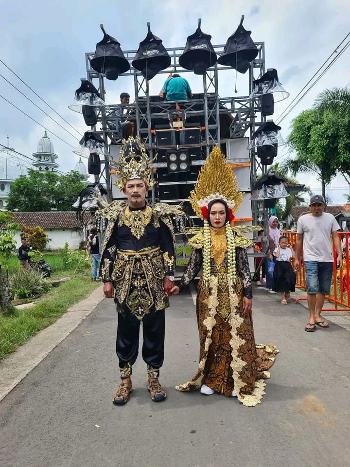 Saat ini kepala desa Tugusari Ahkmat Khoiri SH dengan penampilan rapi bersama istri sebagai permaisuri yang turut serta dalam kegiatan karnaval.