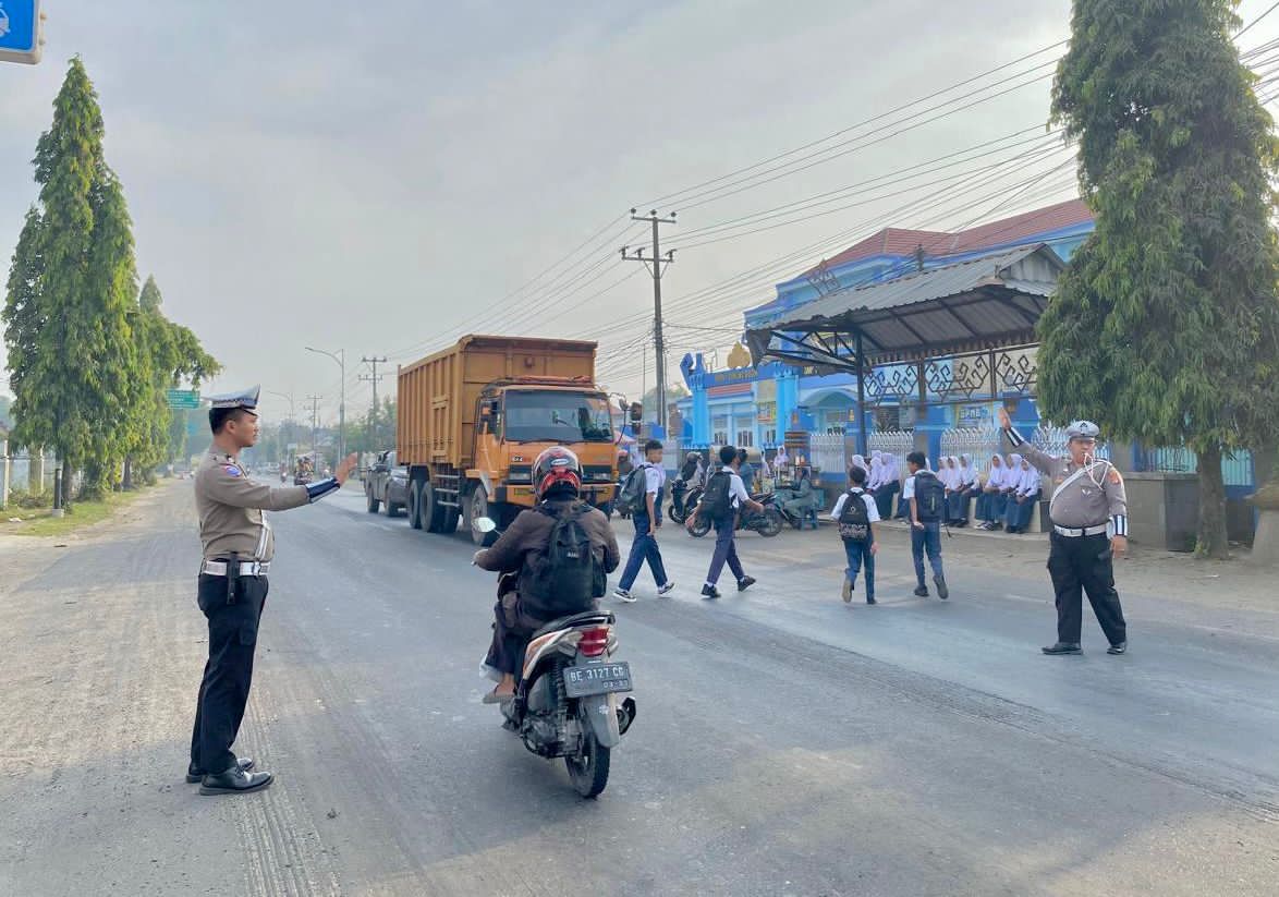 Kegiatan ini melibatkan seluruh personel lalu lintas yang disebar di sejumlah titik strategis seperti simpang jalan, depan sekolah, serta kawasan padat aktivitas untuk melakukan pengaturan arus kendaraan pada jam-jam sibuk pagi hari.
