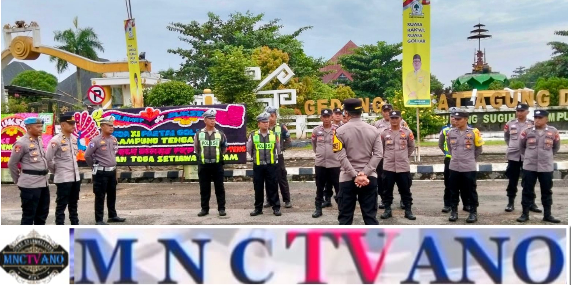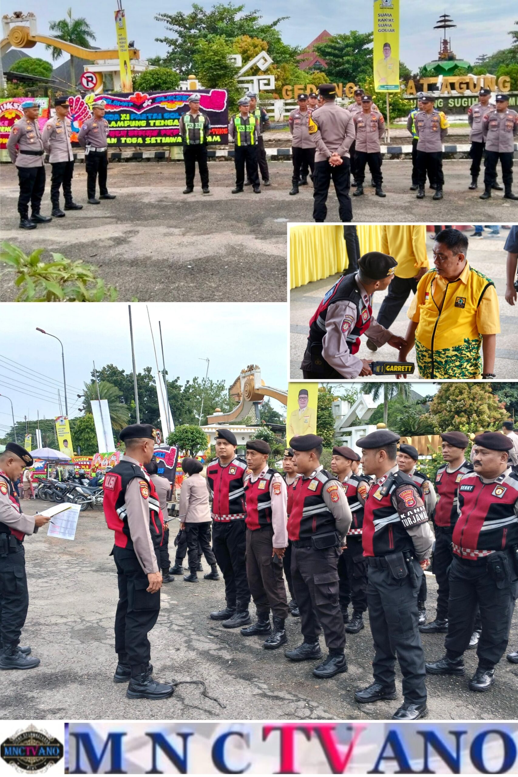 Lampung Tengah – mnctvano.com Polres Lampung Tengah melaksanakan pengamanan secara maksimal dalam rangka kegiatan Musyawarah Daerah (Musda) XI Partai Golkar Kabupaten Lampung Tengah yang digelar di Gedung Sesat Agung Nuwo Balak, Gunung Sugih, Kabupaten Lampung Tengah, Sabtu (7/2/26).