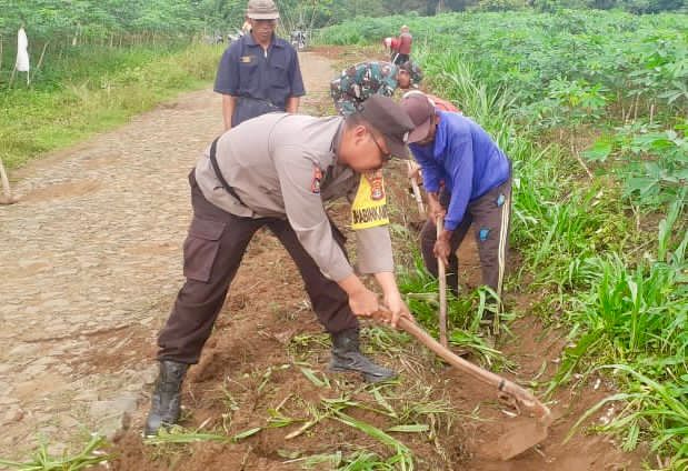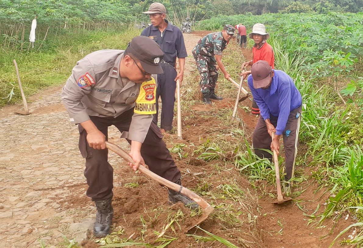 Peduli Lingkungan, Bhabinkamtibmas dan Bhabinsa Punggur Gelar Gotong Royong Bersama Warga