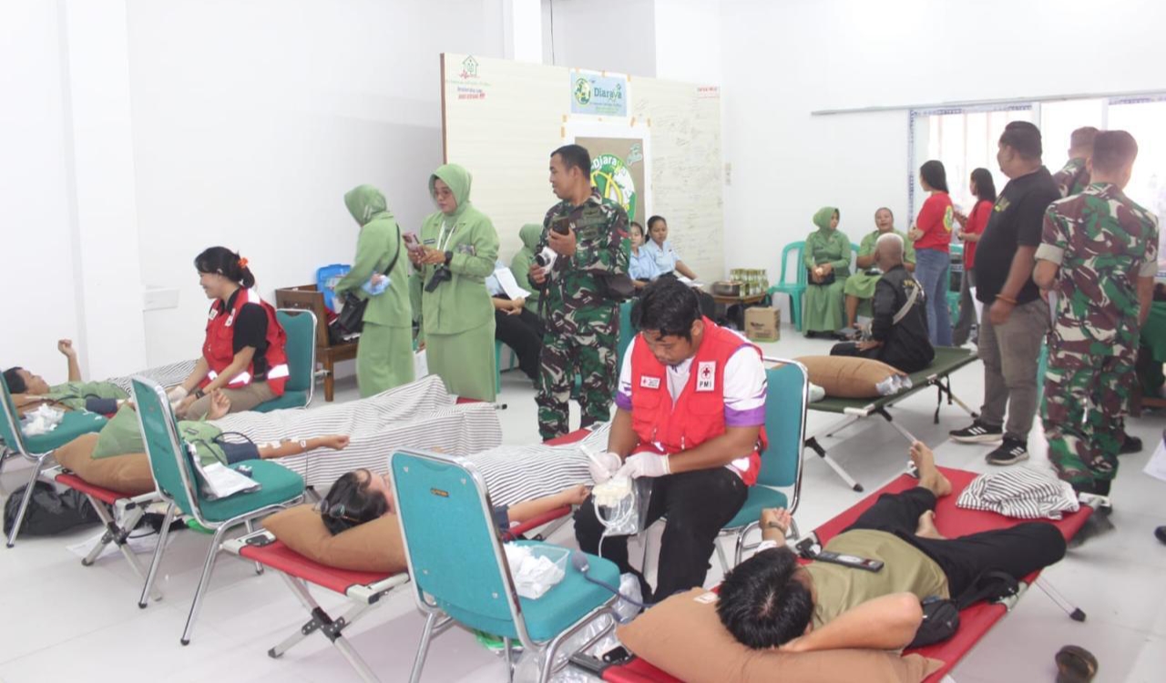 Kegiatan donor darah berlangsung dengan tertib, lancar, dan penuh semangat kebersamaan, sejalan dengan tema HUT Persit KCK ke-80 Tahun 2026 yang mengedepankan peran Persit sebagai pendamping prajurit sekaligus mitra sosial yang aktif dan peduli terhadap lingkungan sekitar.(Musa)