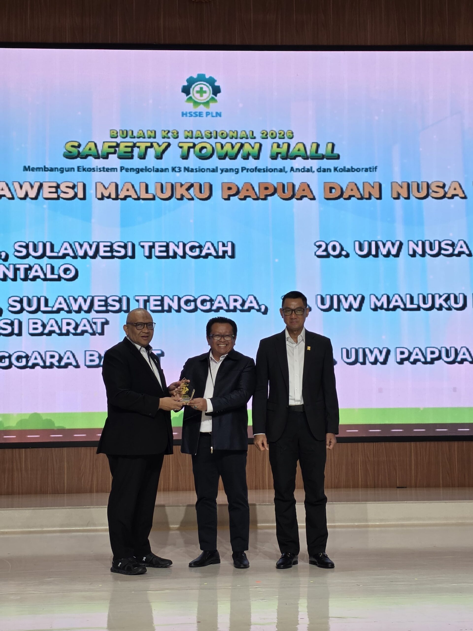 Ambon, mnctvano – General Manager PT PLN (Persero) Unit Induk Wilayah Maluku dan Maluku Utara (UIW MMU), Noer Soeratmoko, menerima Penghargaan Kontribusi Pemulihan Kelistrikan Bencana Sumatera dari Wakil Menteri Ketenagakerjaan Republik Indonesia pada acara Safety Hall Town Meeting Tahun 2026 yang diselenggarakan pada Senin (9/2/2026) kemarin.