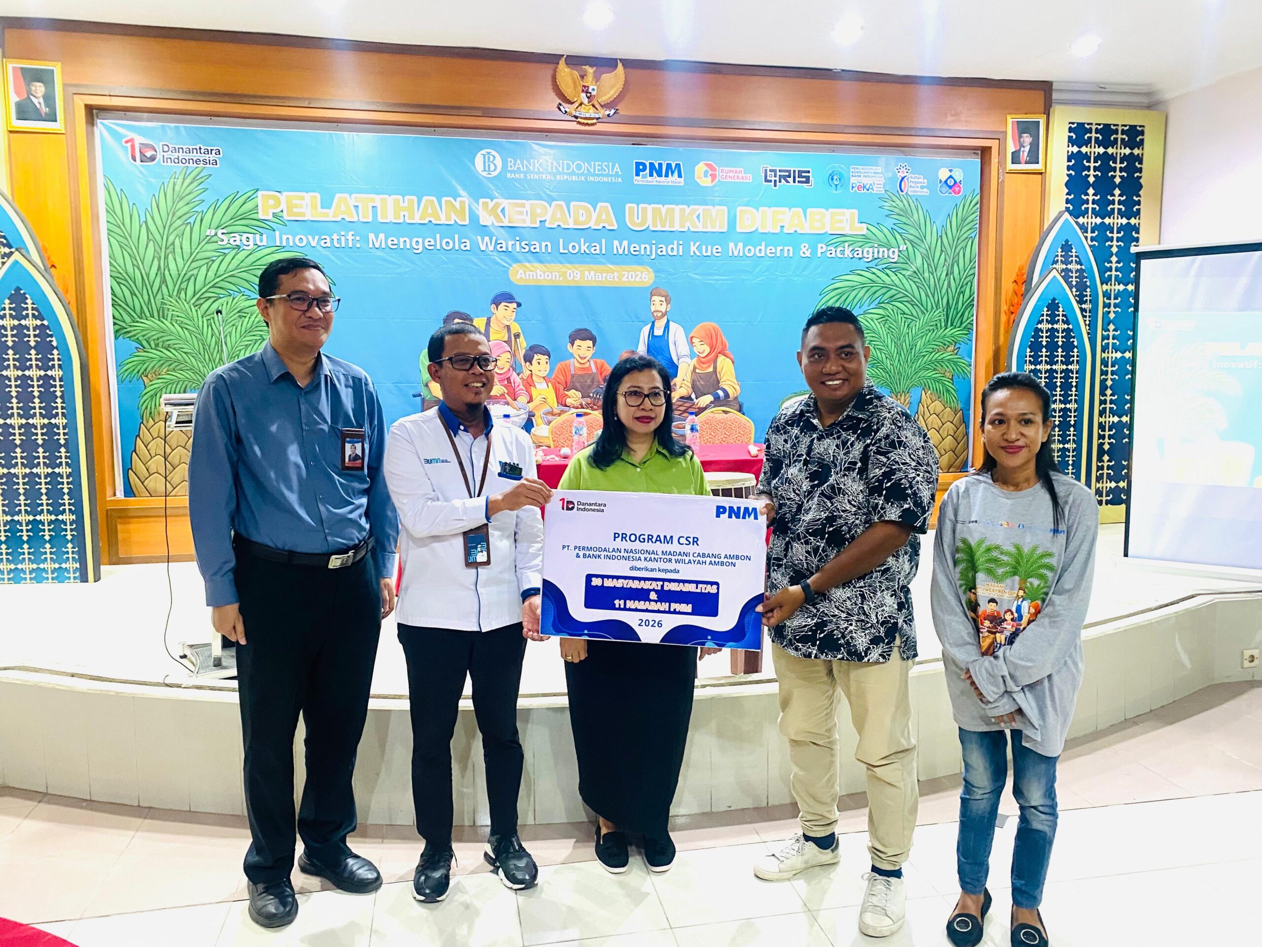 Ambon, mnctvano – Kolaborasi antara PT Permodalan Nasional Madani (PNM), Bank Indonesia, dan Yayasan Rumah Generasi menghadirkan program Madani Empowerpreneur, Difabel Bisa Berusaha bertema “Sagu Inovatif: Mengelola Warisan Lokal menjadi Kue Modern dan Packaging” di Aula Kantor Bank Indonesia, Ambon. Kegiatan ini menjadi ruang pembelajaran sekaligus pemberdayaan bagi penyandang disabilitas untuk mengembangkan keterampilan usaha ultra mikro berbasis potensi lokal, khususnya olahan sagu sebagai salah satu pangan khas Maluku.