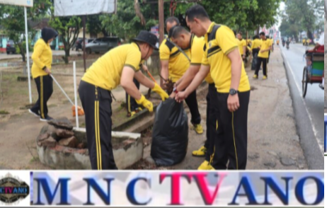 Lampung Timur, Lampung, mnctvano.com – Wujud kepedulian terhadap lingkungan kembali dipimpin langsung oleh Kapolres Lampung Timur yang diwakili Wakapolres Lampung Timur dan turun langsung melaksanakan kegiatan gotong royong dimulai dengan membersihkan masjid Pekalongan dan dilanjutkan dengan membersihkan sampah di sepanjang jalan dari Polsek Pekalongan sampai pasar Pekalongan. Sabtu (7/2/26).