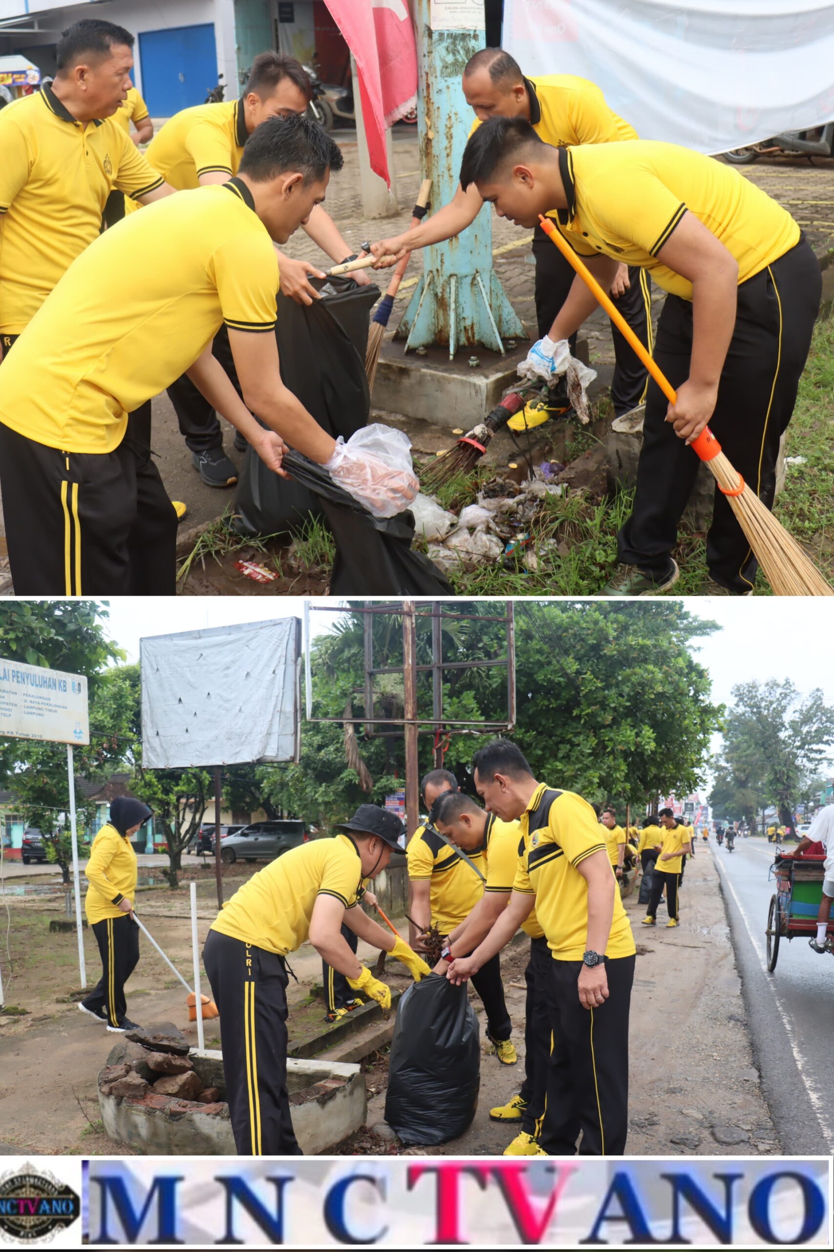 Lampung Timur, Lampung, mnctvano.com – Wujud kepedulian terhadap lingkungan kembali dipimpin langsung oleh Kapolres Lampung Timur yang diwakili Wakapolres Lampung Timur dan turun langsung melaksanakan kegiatan gotong royong dimulai dengan membersihkan masjid Pekalongan dan dilanjutkan dengan membersihkan sampah di sepanjang jalan dari Polsek Pekalongan sampai pasar Pekalongan. Sabtu (7/2/26).
