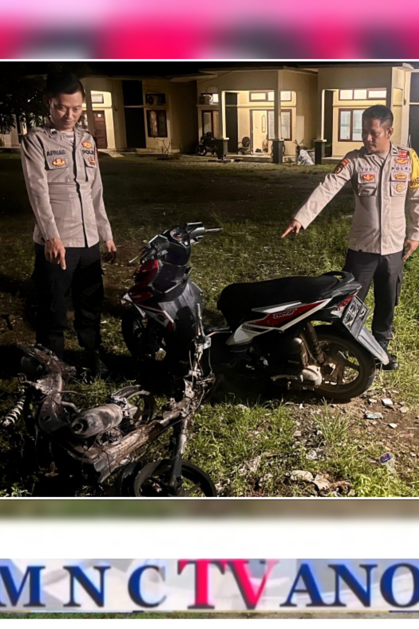Dari tangan pelaku, petugas turut mengamankan barang bukti berupa satu unit sepeda motor milik korban, dua buah kunci letter T, serta sepeda motor milik pelaku yang telah hangus terbakar akibat dibakar massa.