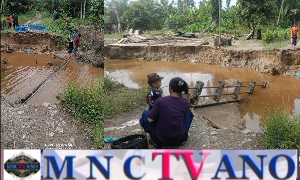 Sehingga warga setempat membuat jembatan darurat dengan menggunakan batang kelapa seadanya. Dan hanya roda dua yang bisa melewatinya. Sedangkan roda empat tidak bisa untuk mengangkut hasil tani warga di dua desa tersebut.