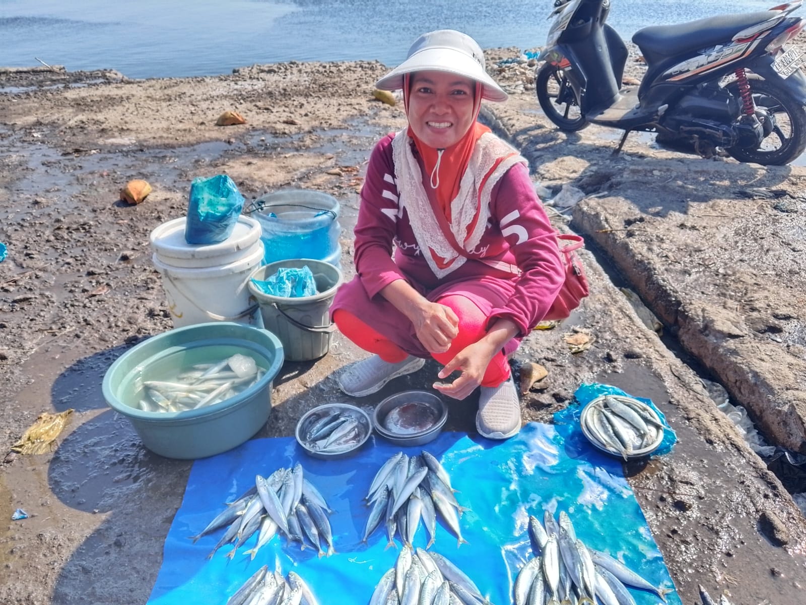 Biasanya Ratna membeli langsung ikan di perahu nelayan kemudian menjual hingga siang hari. Hasil yang didapat tiap hari dari jualan bisa bawa uang kembali ke rumah Rp 100 ribu.