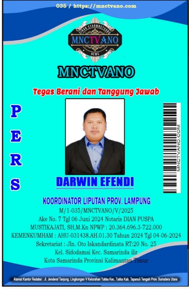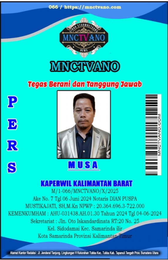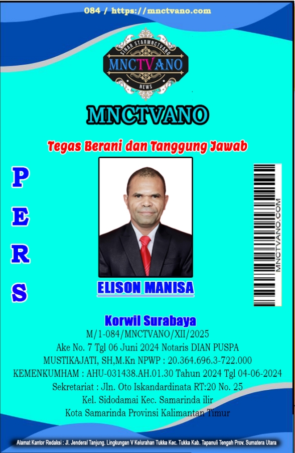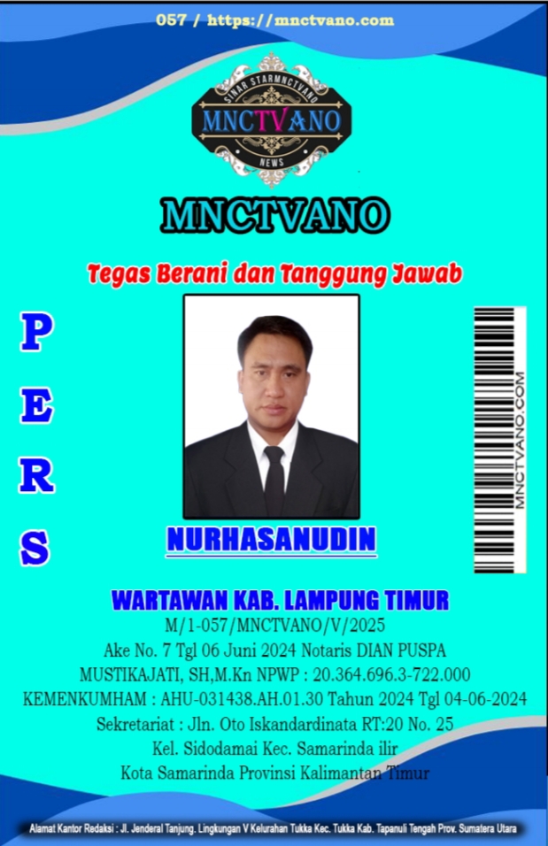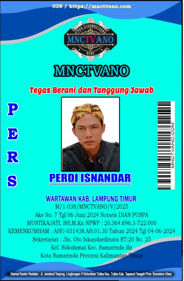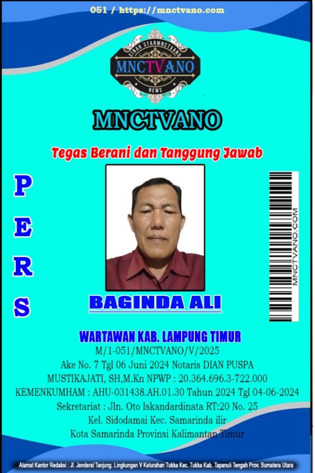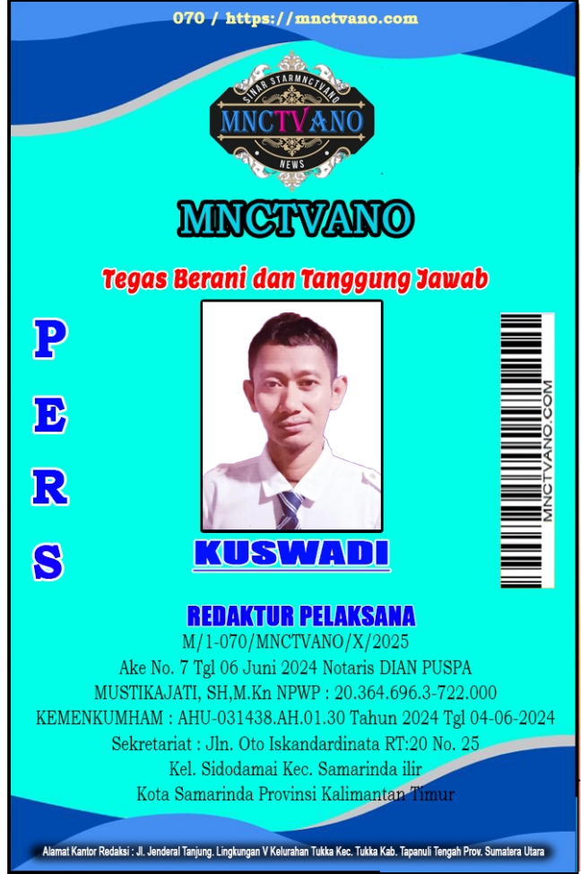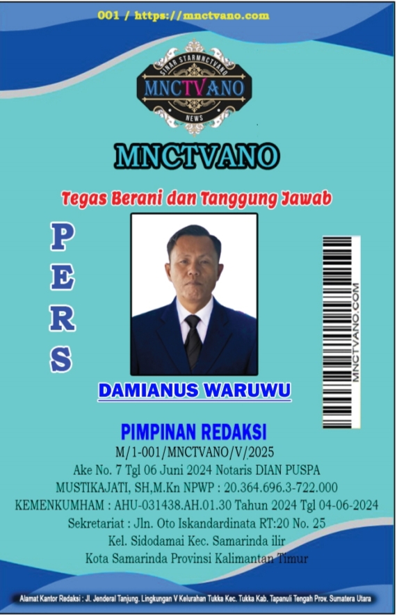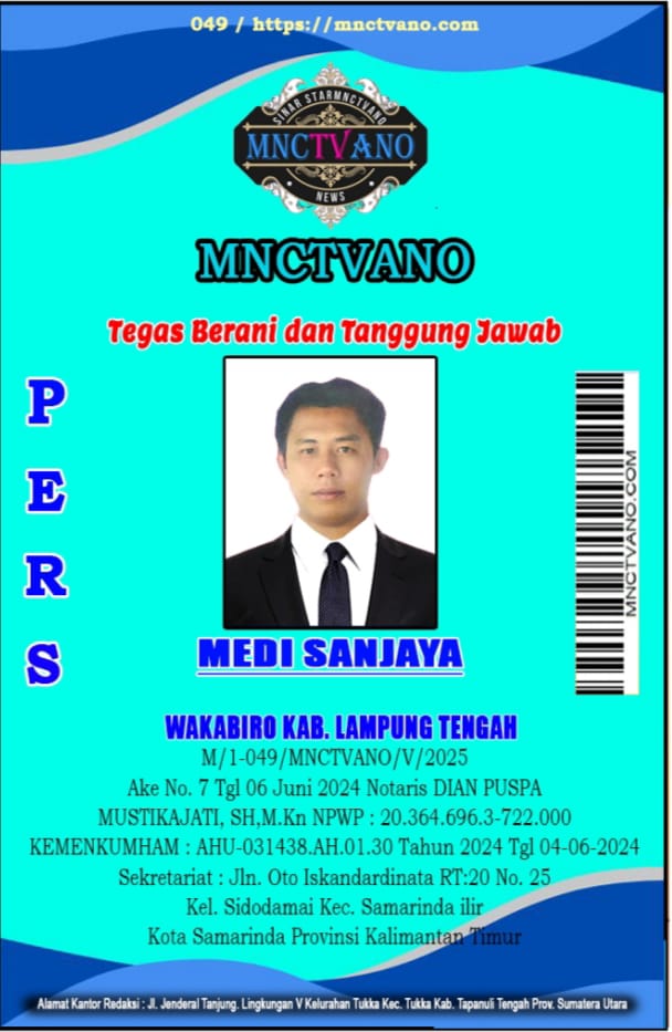 Semua Wartawan mnctvano.com dilengkapi surat Kartu Pers (KTA) dan Surat Tugas, Bila tidak tercantum namanya didalam Box Redaksi bukan anggota Pers mnctvano.com