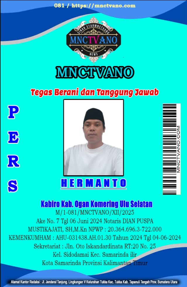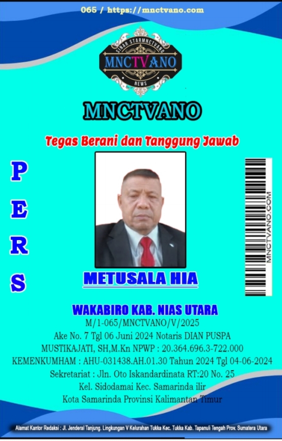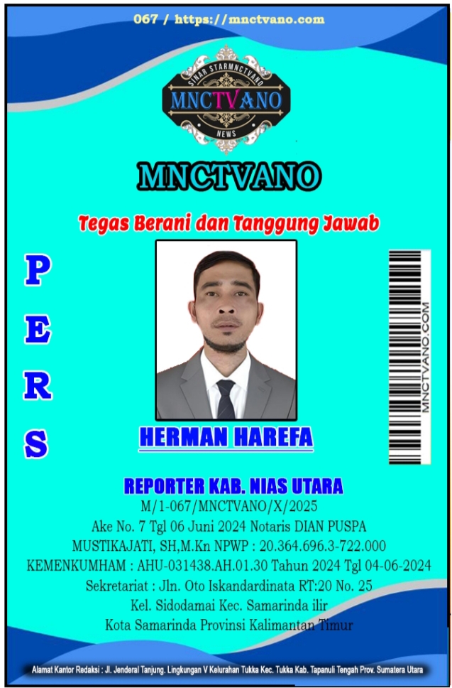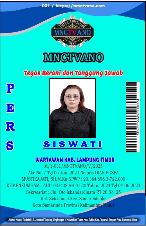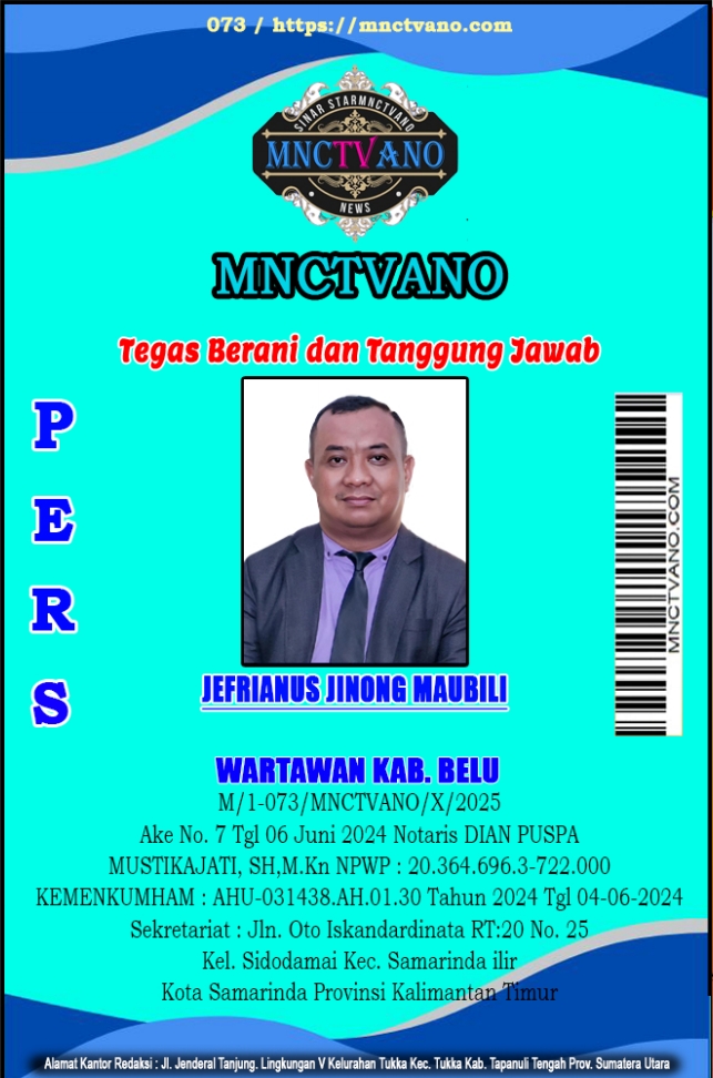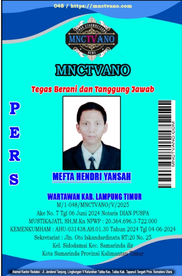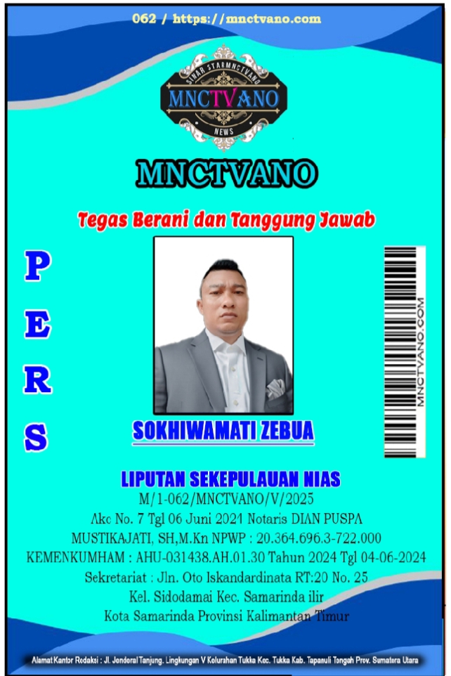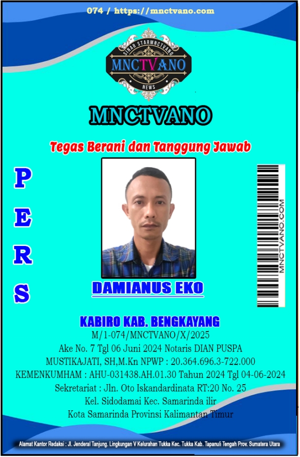 Semua Wartawan mnctvano.com dilengkapi surat Kartu Pers (KTA) dan Surat Tugas, Bila tidak tercantum namanya didalam Box Redaksi bukan anggota Pers mnctvano.com