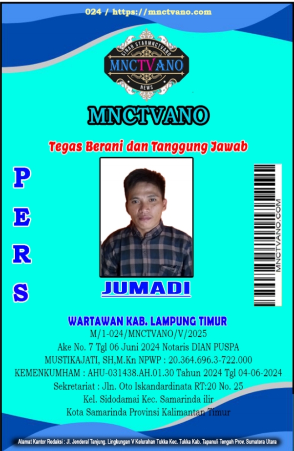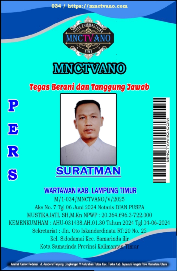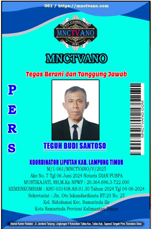 Koordinator Liputan Kabupaten Lampung Timur : Teguh Budi Sentosa