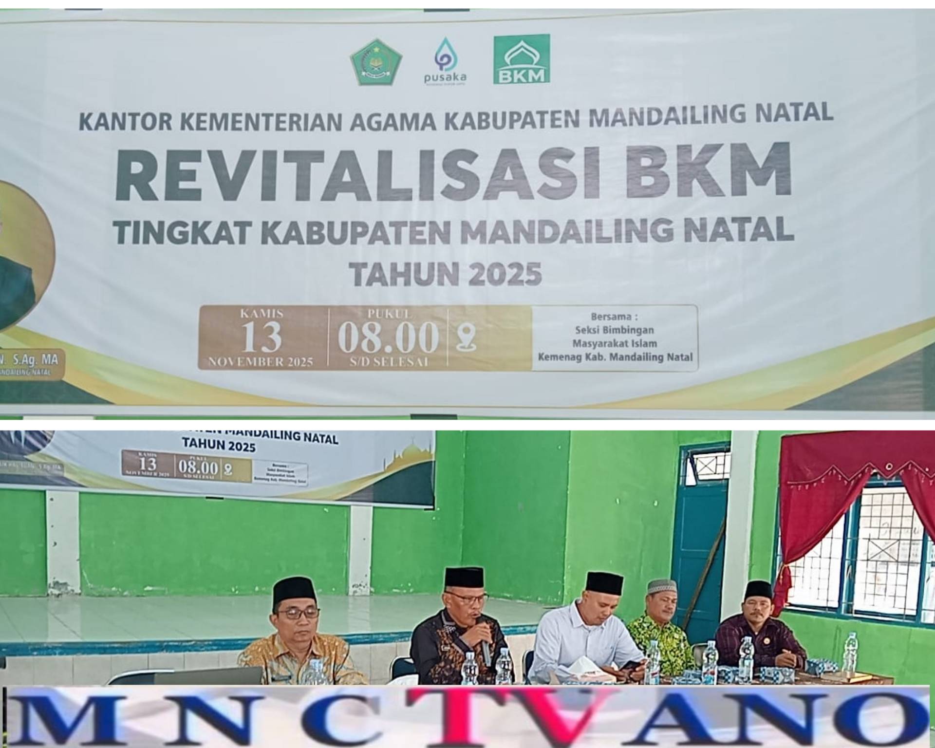 Kementerian Agama Kabupaten Mandailing melaksanakan acara Revitalisasi Badan Keswadayaan Masyarakat dan Badan Kesejahteraan Masjid(BKM) di Aula Kantor Kemenag Kecamatan Panyabungan Utara yang di hadiri oleh Ketua BKM, KAKAN KEMENAG Kabupaten Mandailing Natal Bapak H.Maranaik Hasibuan S.Ag.MA, Kepala Kantor Urusan Agama (KUA)Kecamatan Panyabungan Utara Bapak Salohot Pasaribu S.Ag, mewakili Bapak Camat Panyabungan Utara.Fithri Suhadi Nasution.S.Sos,Ketua Panitia Penyelenggara BKM dan Mewakili MUI H.Irfansyah Nasution.S.Ag.MH