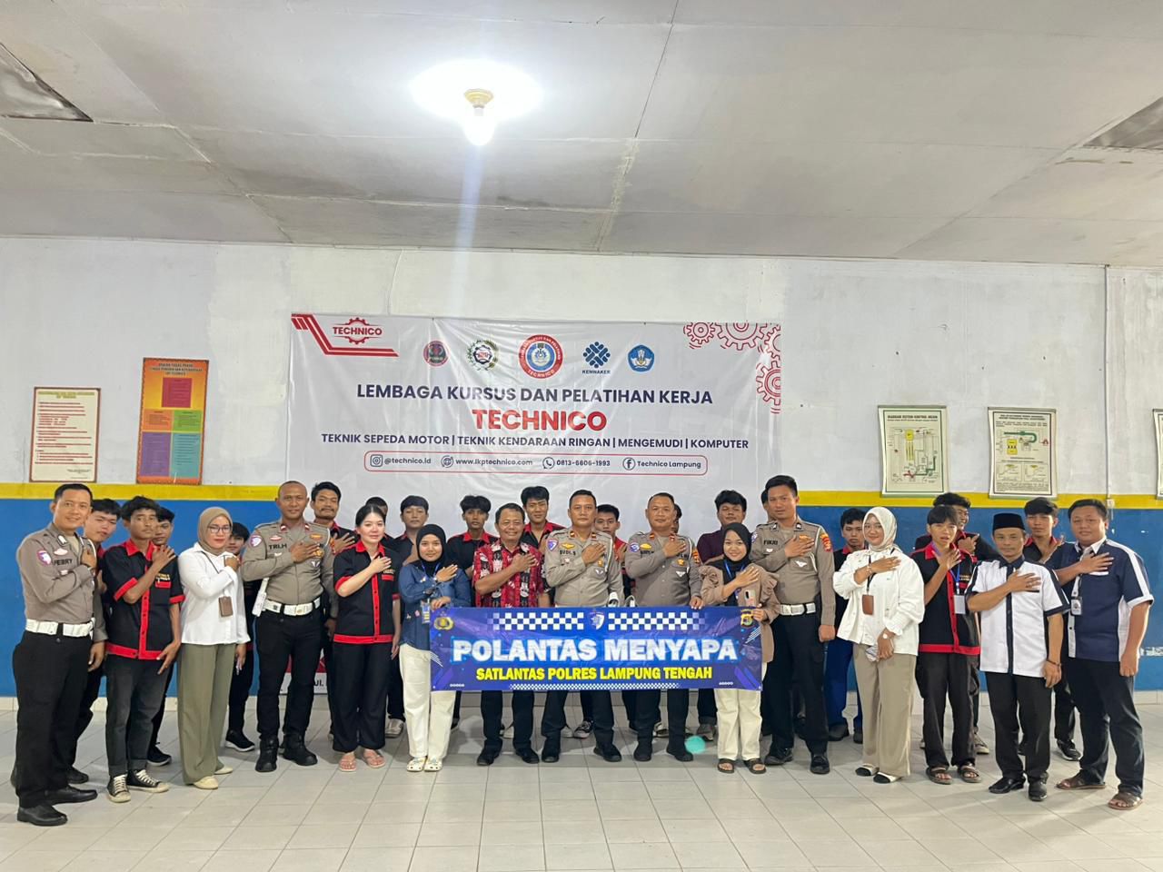 Satlantas Polres Lampung Tengah kembali melaksanakan kegiatan bertajuk “Polantas Menyapa” dengan menyambangi Lembaga Kursus dan Pelatihan Kerja (LKP) TECHNICO yang berlokasi di Kecamatan Terbanggi Besar, Kabupaten Lampung Tengah.