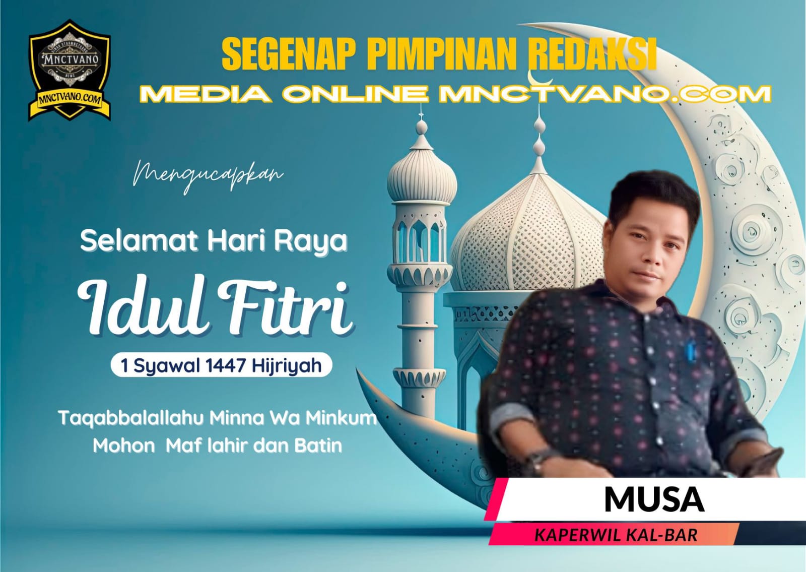 SEGENAP PIMPINAN REDAKSI MEDIA ONLINE MNCTVANO.COM KALIMANTAN BARAT Musa mnctvano.com20 Maret 20266 Dilihat Mengucapkan : Selamat Hari Raya IDUL FITRI 1 Syawal 1447 H “Mohon Maaf Lahir Dan Batin” Musa Kaperwil Kalbar Post Views: 6 Pos terkaitKASAT RESKRIM POLRES SEKADAU BESERTA KELUARGATahap II : Nama-nama Warga Desa Sihapas Yang Terdampak Lumpur, Banjir Bandang dan longsor 25 November 2025 LaluSegenap Jajaran BPP Komsosbud GBSI Mengucapkan Selamat Hari Raya Idul Fitri 1 Syawal 1447 H/ 2026 MBupati Melawi Beserta IstriHENDEGI JANUARDI USFA YURSA, S.IP DAN KELUARGA KETUA DPRD KABUPATEN MELAWIDiduga Kembali Beroperasi, “Ratu Solar” Linda Jalankan Strategi Baru, APH Diminta Bertindak Tegas