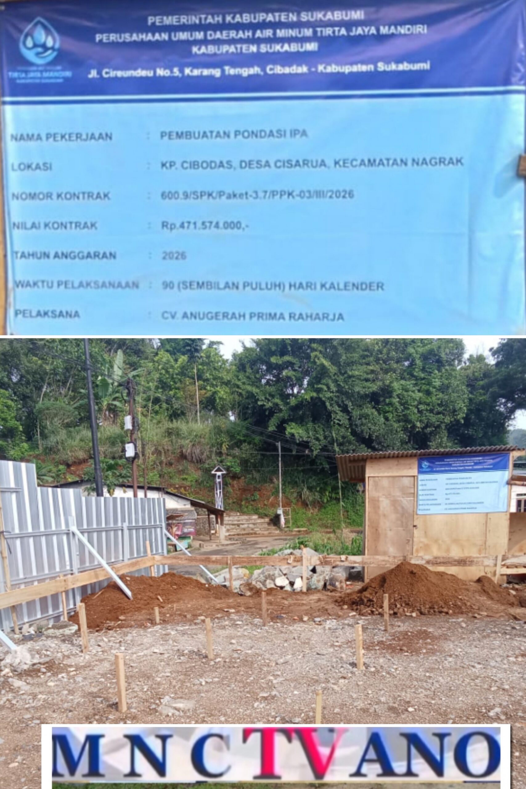 Pemerintah Kabupaten Sukabumi melalui Perusahaan Daerah Air Minum (PDAM) Tirta Jaya Mandiri terus menunjukkan komitmennya dalam penyediaan air bersih bagi masyarakat. Tahun 2026 ini, PDAM yang berkantor di Jl. Ci Reundeu No. 5 Karang Tengah, Cibadak, Kabupaten Sukabumi tersebut memulai pembangunan pondasi Instalasi Pengolahan Air (IPA) baru yang berlokasi di Kampung Ci Bodas, Desa Ci Sarua, Kecamatan Nagrak.